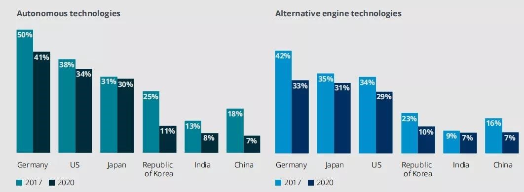 图7:不愿意为自动驾驶技术和替代发动机技术再付钱的消费者百分比