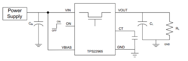 TPS22965DSGR是一款单通道负载开关,可提供可配置的上升时间来尽量减小浪涌电流。此器件包括一个N通道金属氧化物半导体场效应晶体管(MOSFET),可在0.8V至5.7V的输入电压范围内运行并可支持6A的最大持续电流。此开关由一个开/关输入(ON)控制,此输入能够直接连接低电压控制信号。在TPS22965DSGR中,为了实现开关关闭时的快速输出放电,增加了一个225Ω的片上负载电阻器。TPS22965DSGR采用小型,节省空间的2.00mmx2.00mm8引脚SON封装(DSG),且带有集成散热焊盘,支持较高功耗。器件在自然通风环境下的额定运行温度范围为-40°C至85°C。