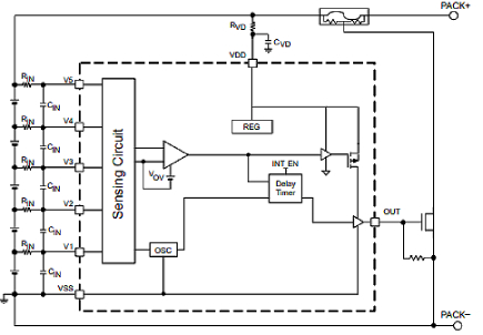 2节、3节、4节和5节串联电池过压保护