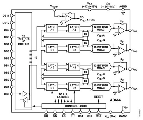 AD664BD-UNI | ADI(亚德诺) | DA转换器 | 单片12位四路DAC Monolithic 12-Bit Quad DAC |